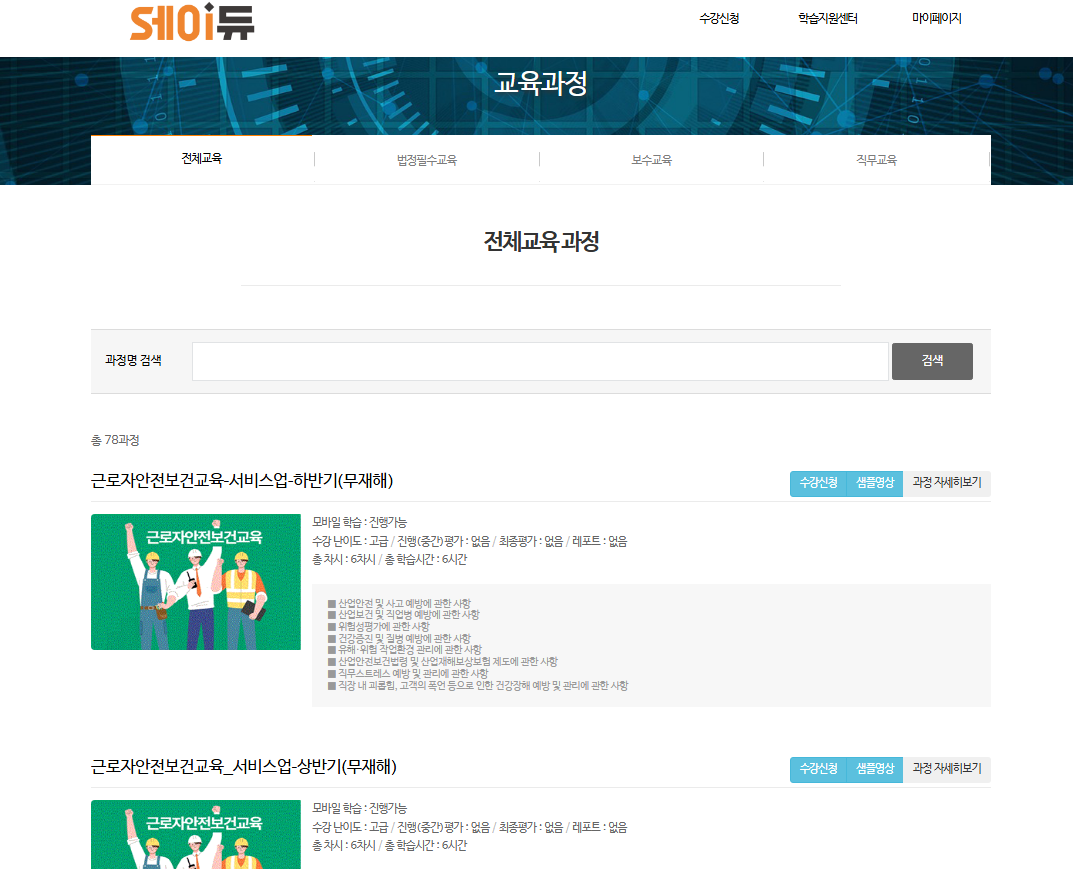 5) 개강일/수강기간을 확인해 학습 일정을 계획하세요.팁: 마감 임박 과정은 서버 혼잡·평가 지연을 피하기 위해 최소 2~3일 전에 신청/학습을 권장합니다.