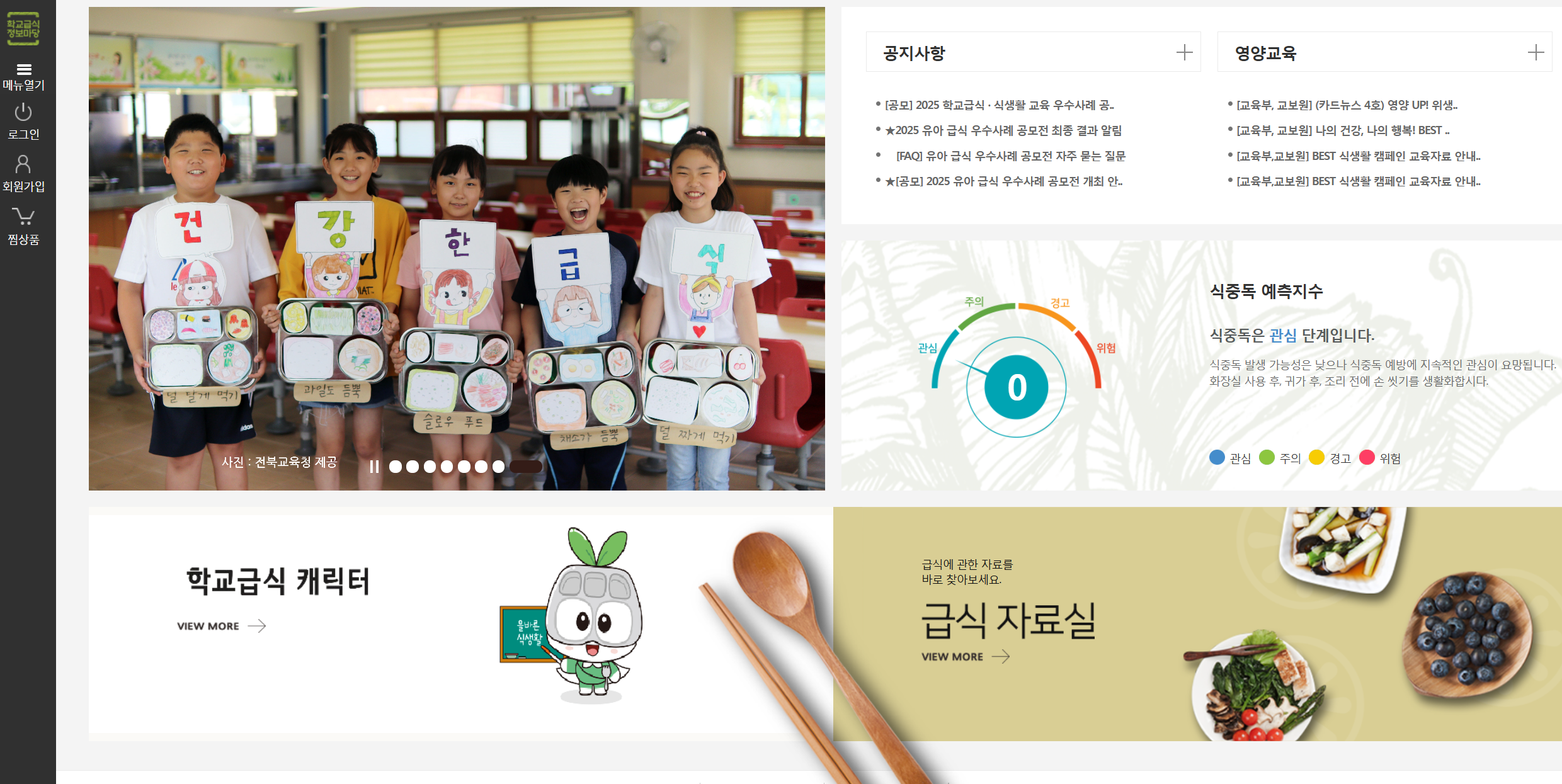 * 식재료 품질 관리: 농산물 품질 관리원 등과 연계된 부적합 식재료 차단 시스템 운영 현황도 이곳에서 확인할 수 있습니다.5. 우수 급식 사례 및 교육용 레시피 라이브러리 활용